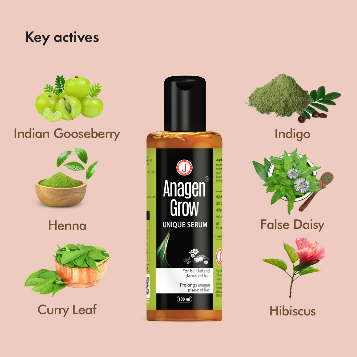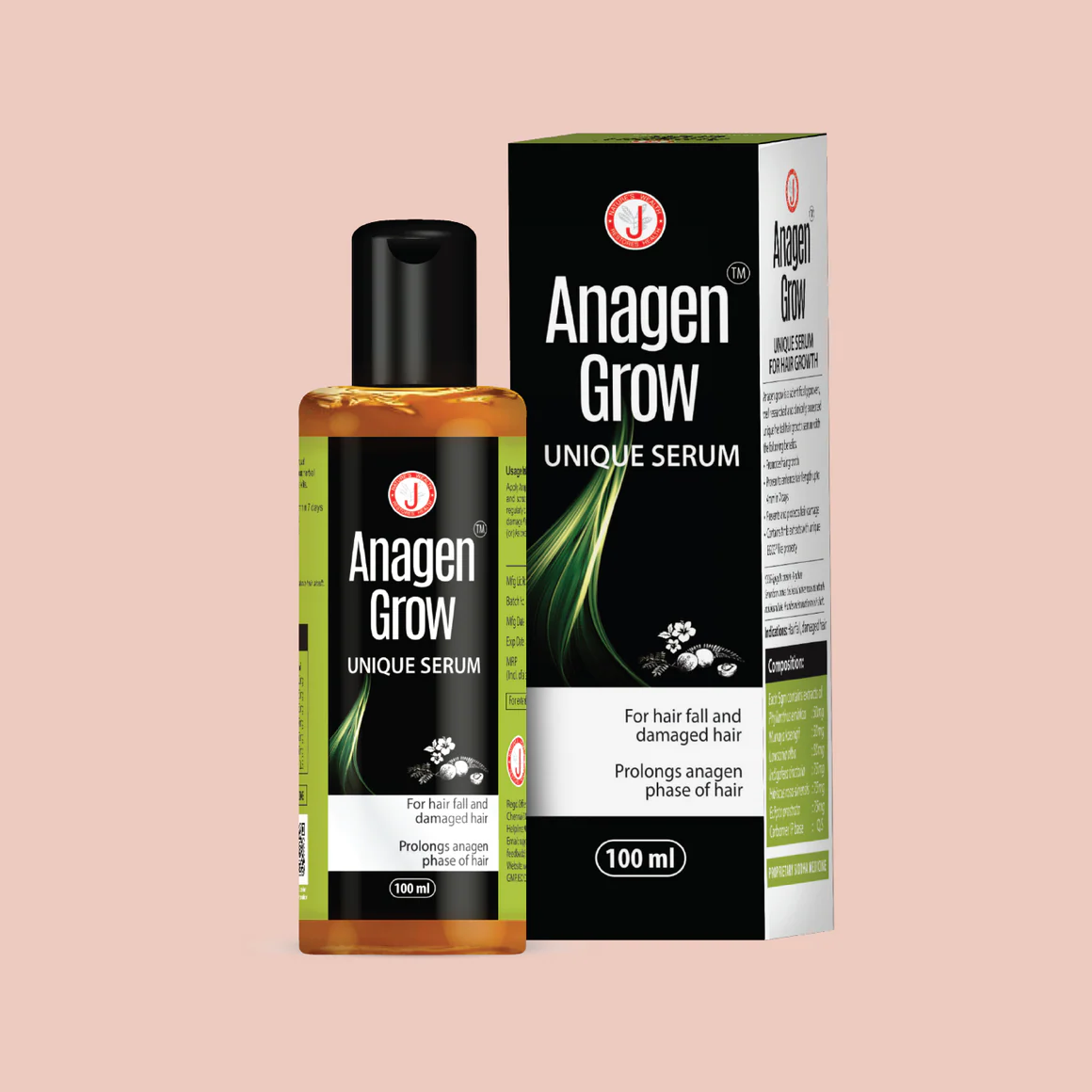 Anagen Grow Serum by Dr. JRK’s Research and Pharmaceuticals is a clinically proven hair serum formulated to stimulate hair regrowth, control hair fall, and revive dormant hair follicles. It works at the root level to improve blood circulation, strengthen hair shafts, and prolong the anagen (growth) phase of the hair cycle.